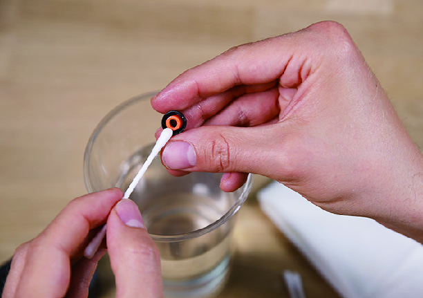耳塞內部累積的耳垢可以用棉花棒去除。