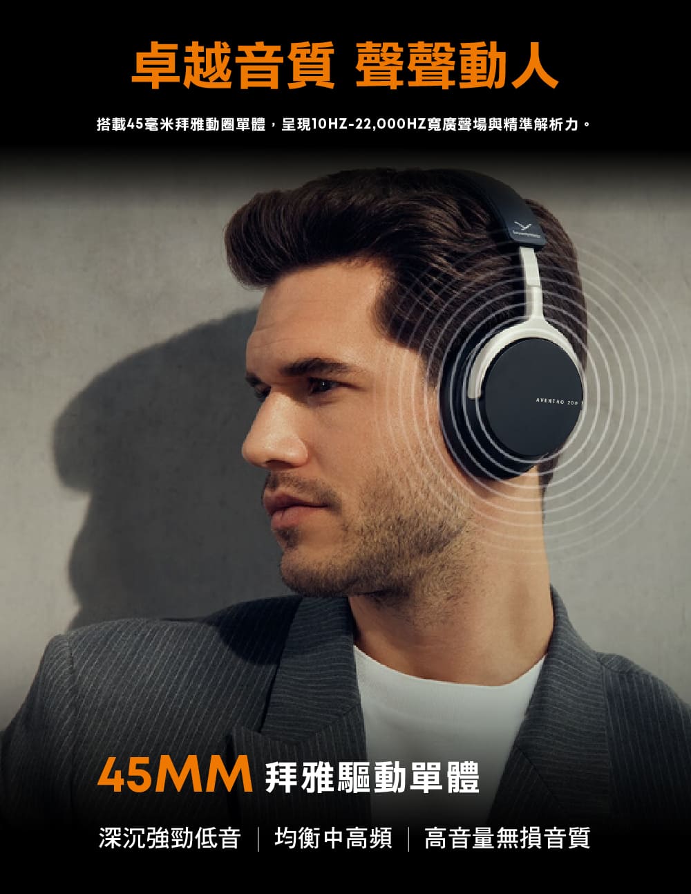 AVENTHO 200 高音質藍牙耳罩式耳機 灰
